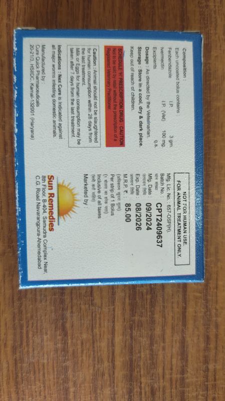| Type | Fenbendazole Bolus |